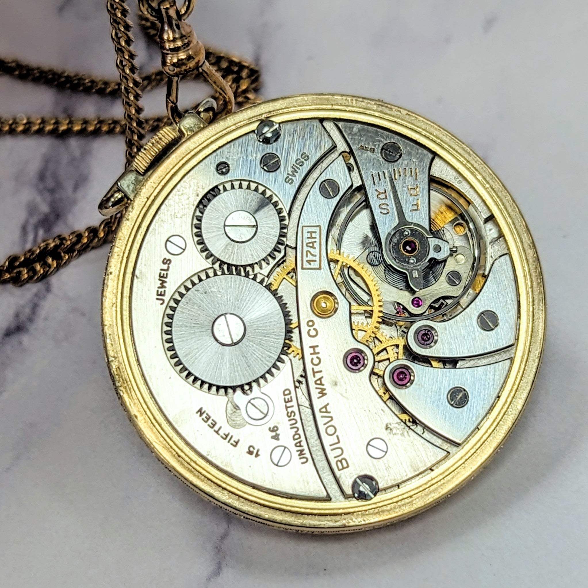 Vintage Bulova Chesterfield Dress Pocket Watch Openface 15 Jewels 17AH - w/Chain