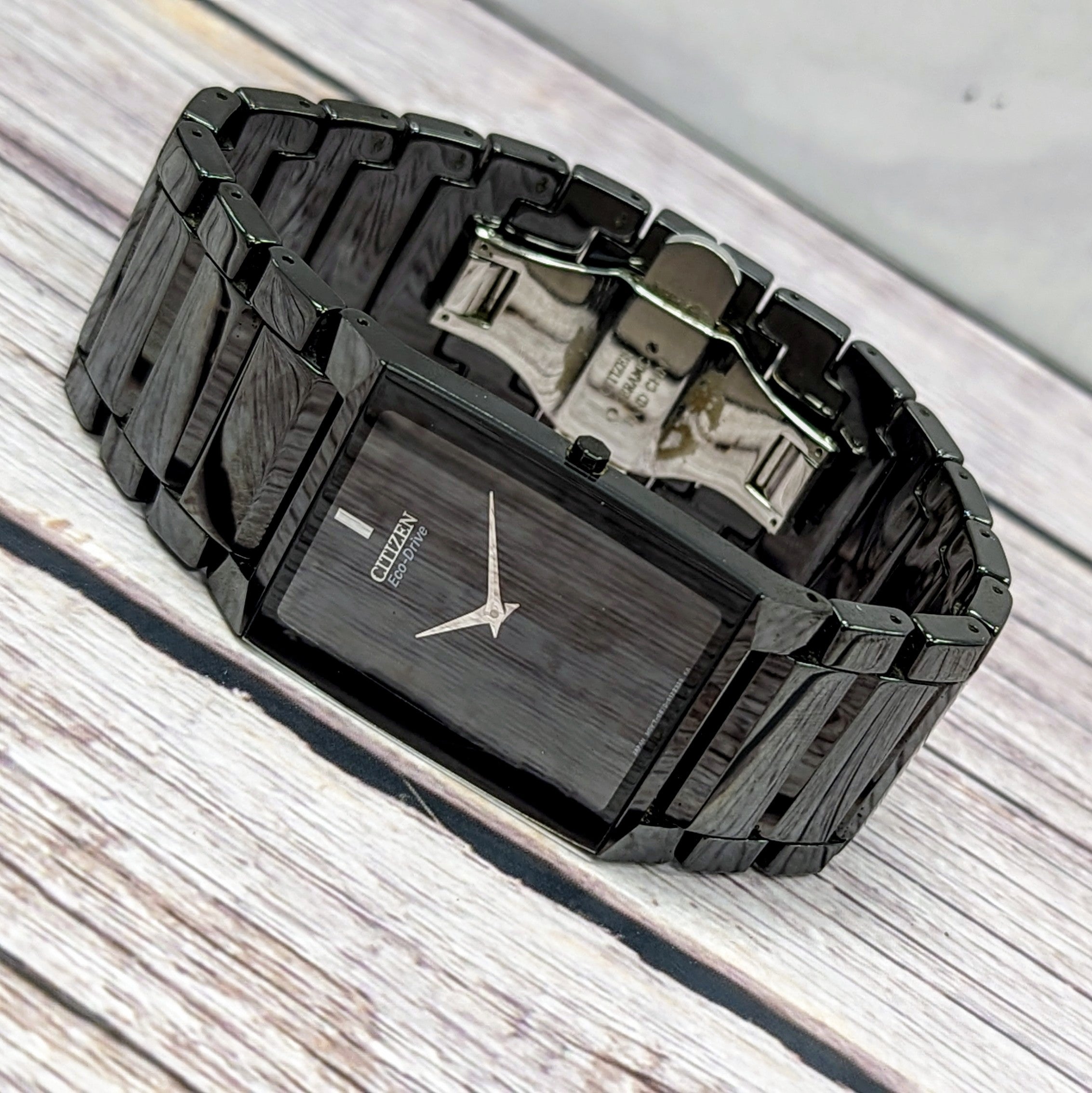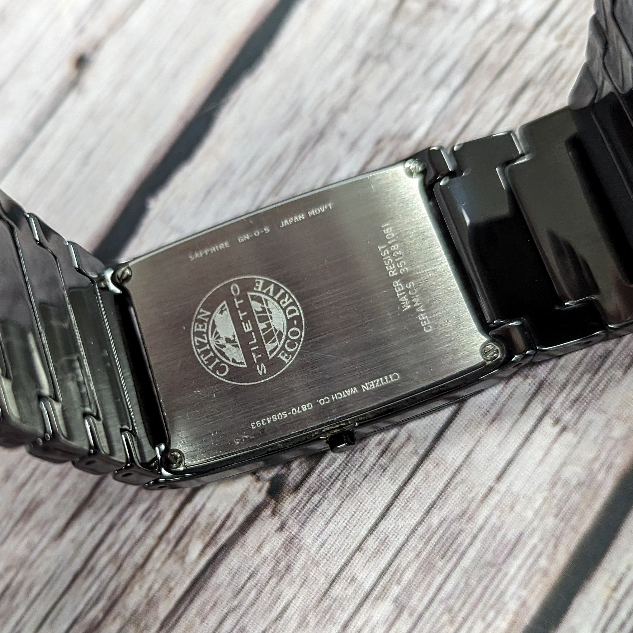 • Case Back Markings: Citizen Stiletto Eco-Drive – Ceramic + Stainless – GN-0-S – Sapphire – Japan Mov’t