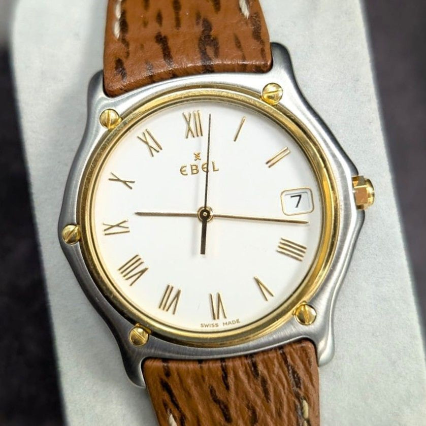 “EBEL – architecture on the wrist since 1911,” this Sport Classic marries timeless elegance with everyday versatility. Reference 1187141 features an 18K gold bezel framing a clean white dial with Roman numerals and a reliable and slim quartz movement. Ideal for collectors who appreciate 1980s minimalist luxury with timeless styling.