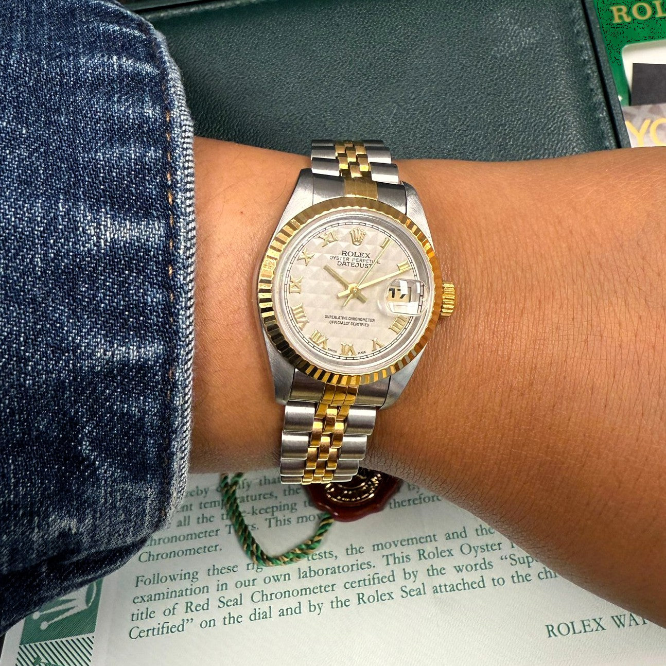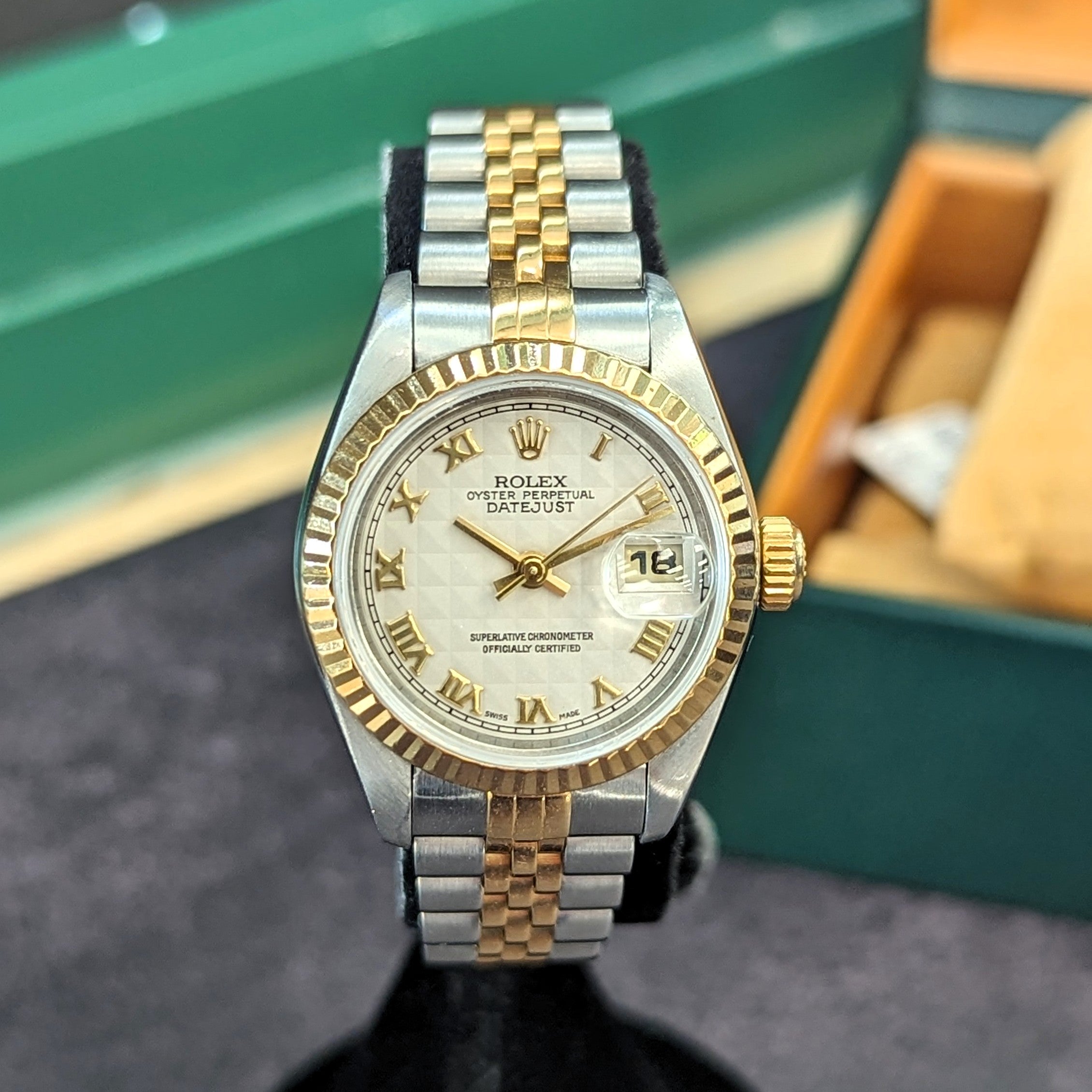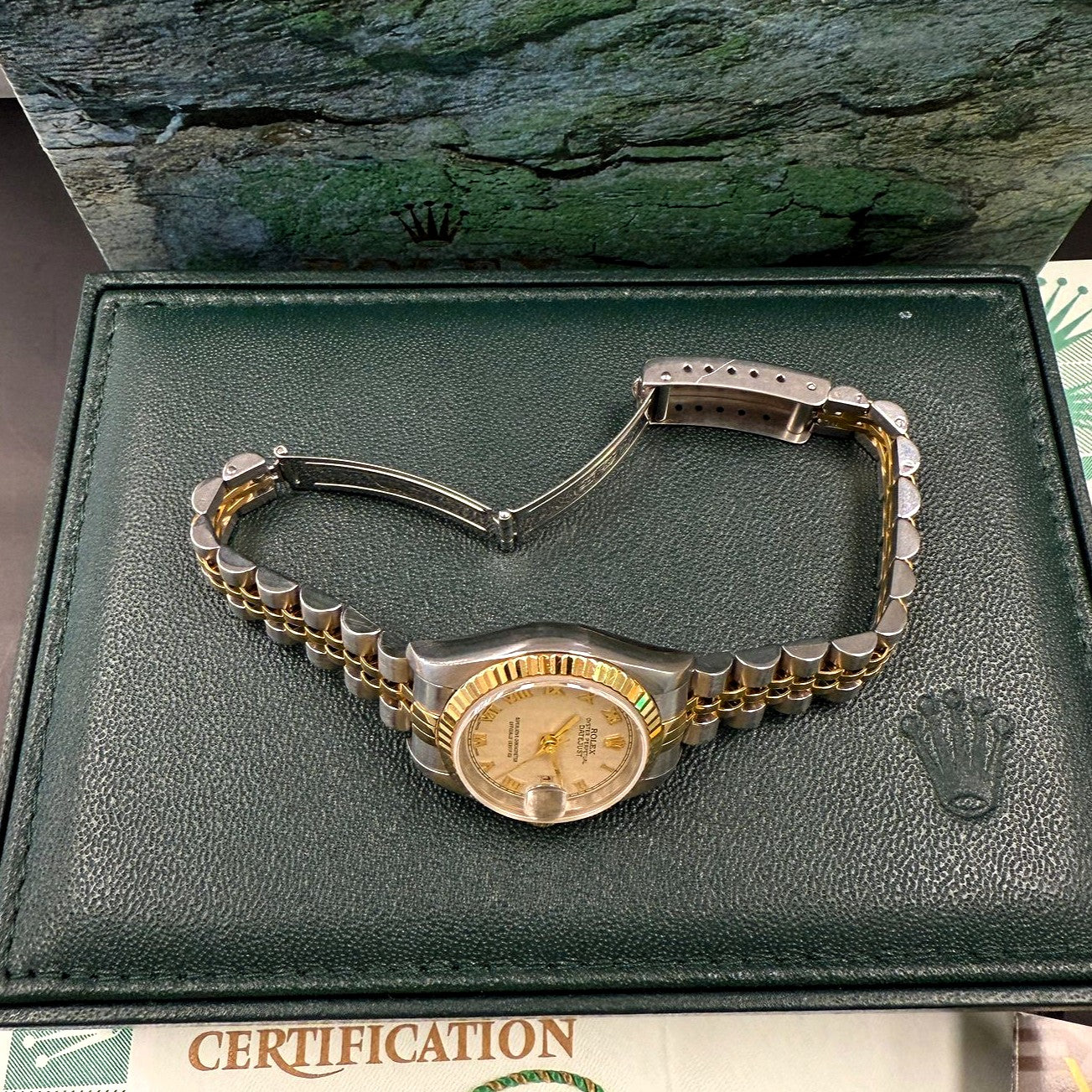 1996 Rolex Lady-Datejust Watch 69173 26mm Ivory Pyramide Roman Dial - Full Set