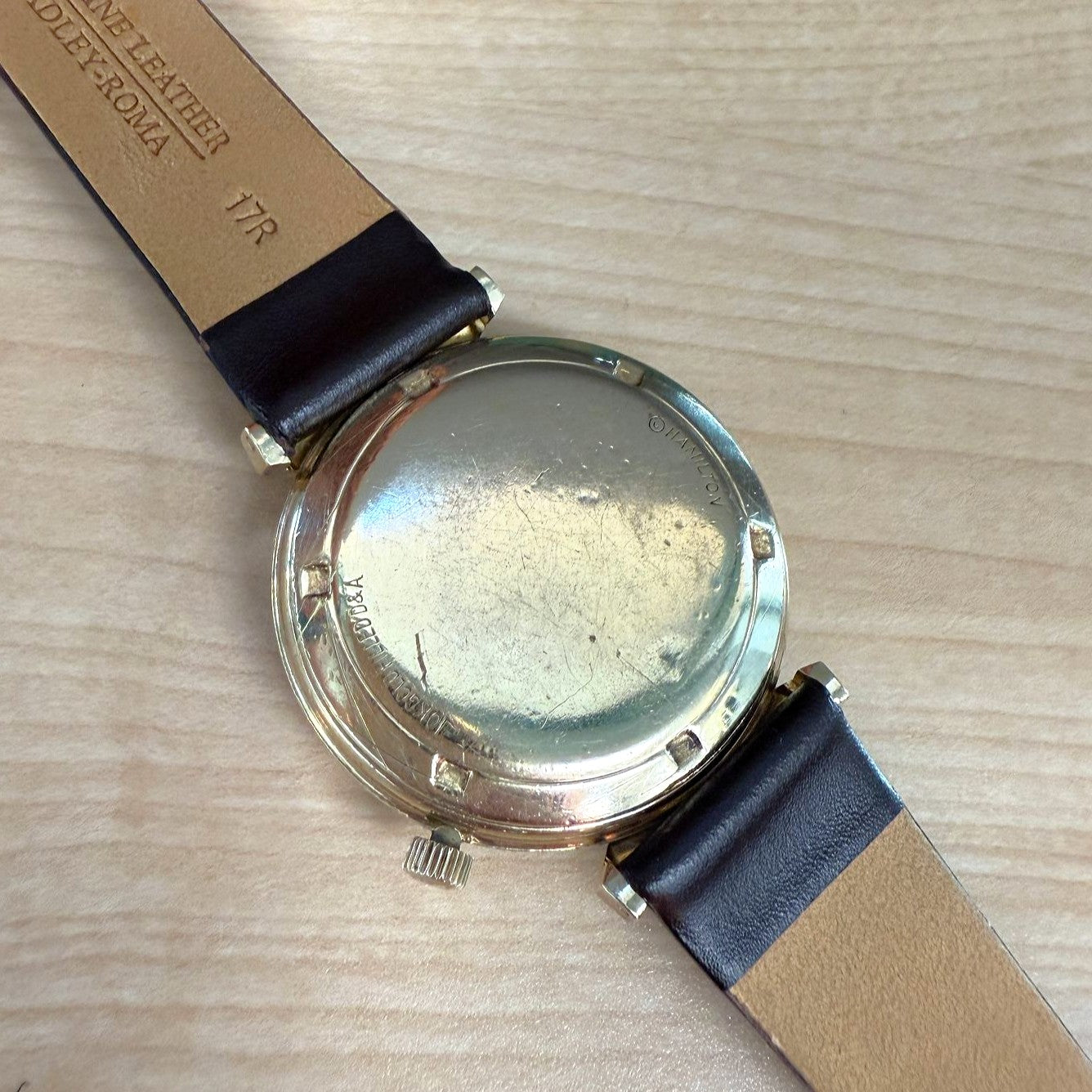 | Hamilton 505 | Hamilton - 10K Gold Filled | Case Diameter 34mm Case Diameter w/Crown Case Lug to Lug Case Thickness Lug Width 17 Band Width 17 |