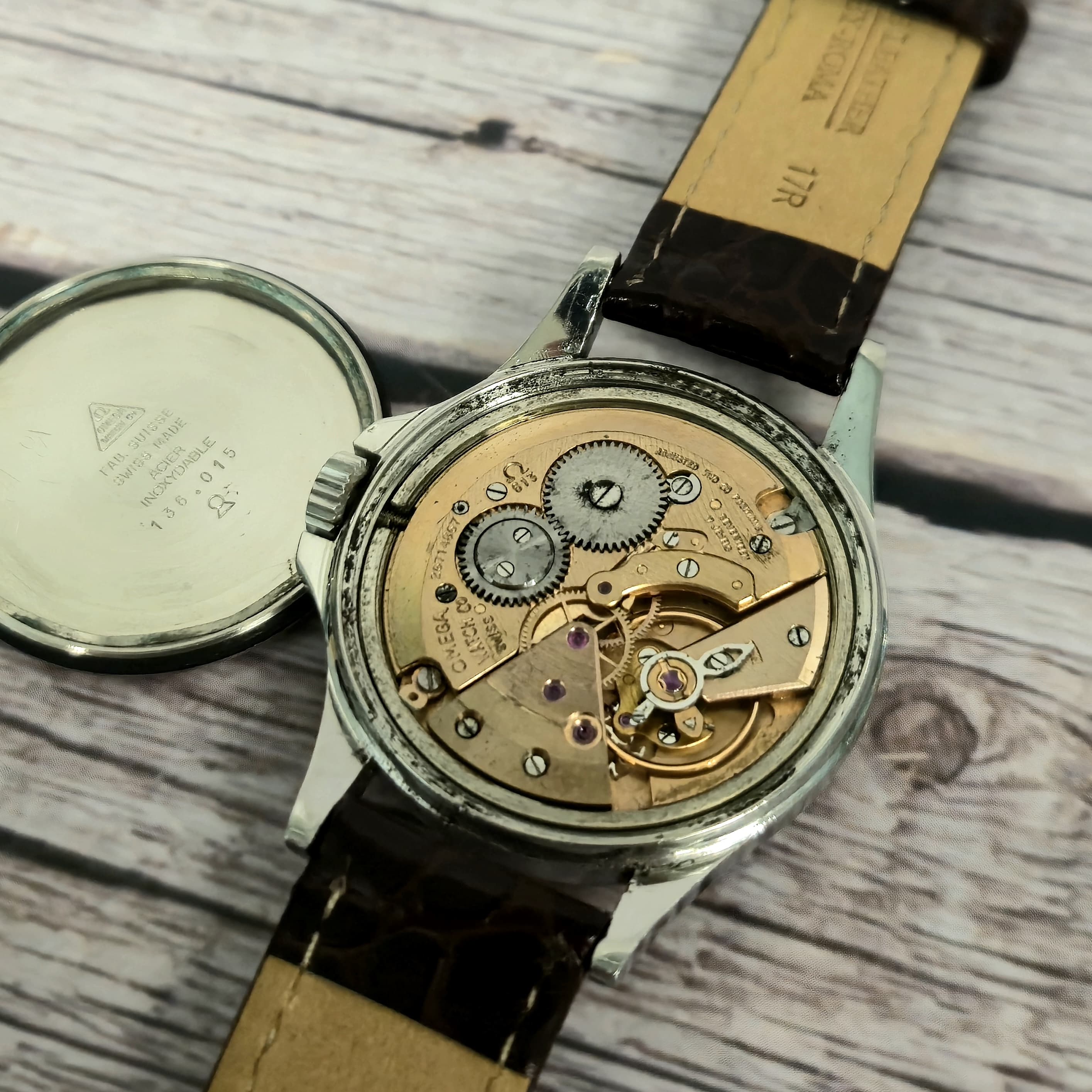 • Case Back Markings: Omega Watch Co. - Fab. Suisse Swiss Made - Acier Inoxidable - 136.015