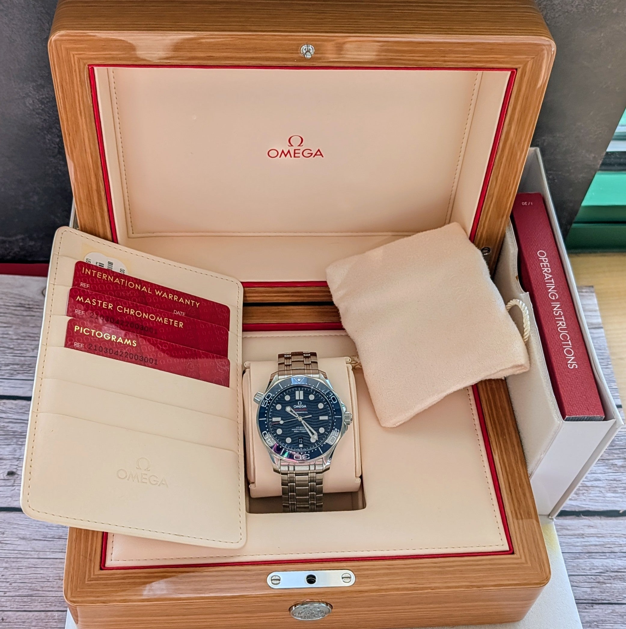 - Box & Papers: YES - Original 2-box set, Omega operating instructions booklet, chronometer certificate, pictograms and international warranty card
