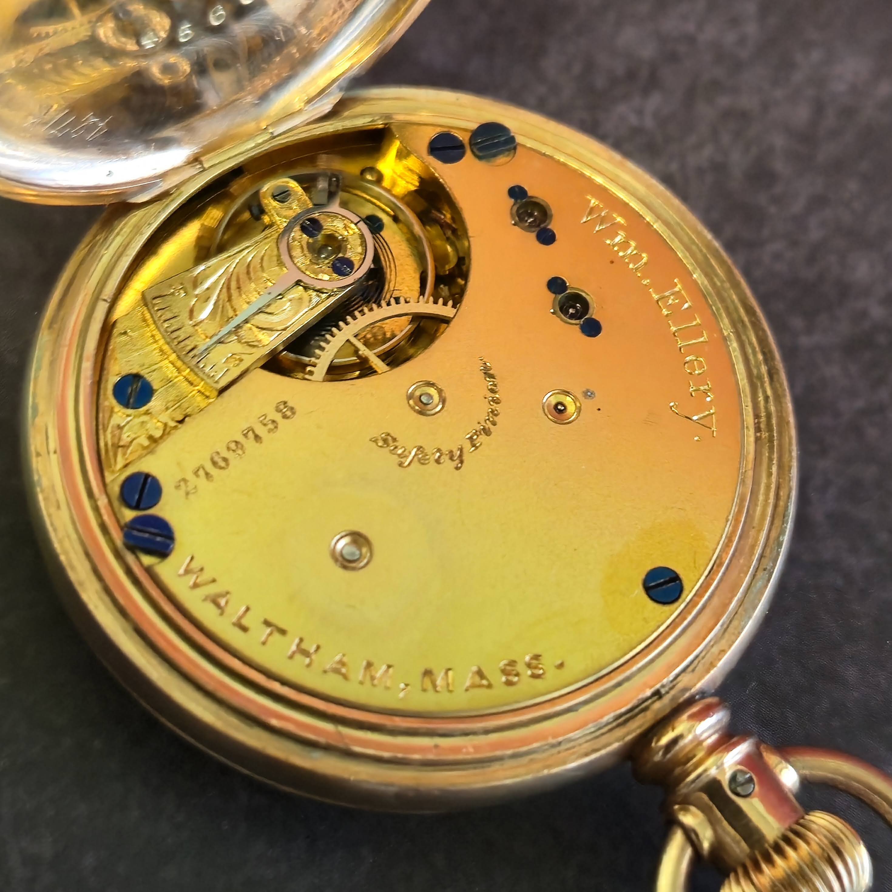 1885 Waltham Pocket Watch Grade Wm. Ellery 11 Jewels 6s Engraved Hunter G.F. Case