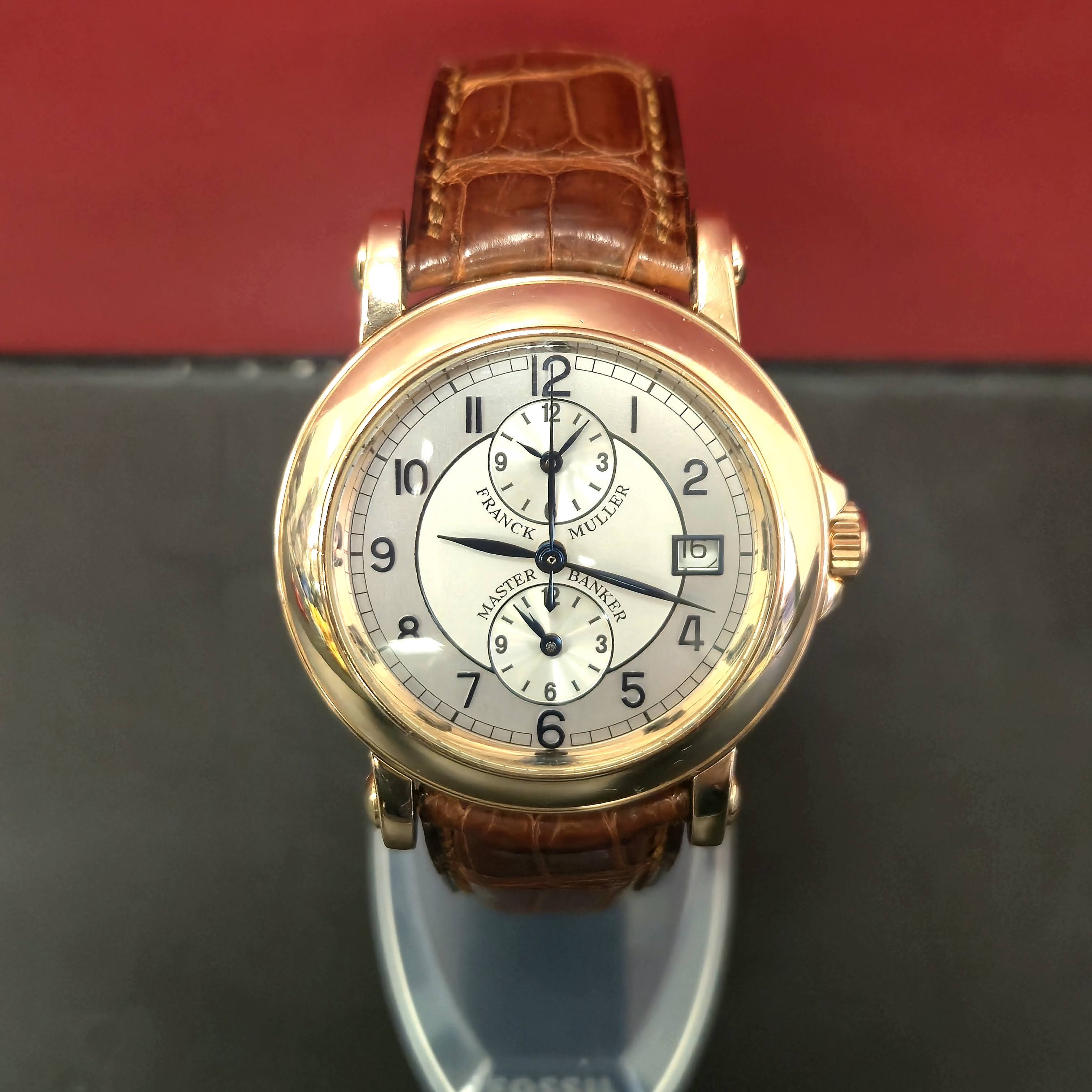 Offered here is an exceptional example of Franck Muller’s renowned horological expertise — the Master Banker reference 7000 MB, part of the prestigious Master of Complications collection, crafted in solid 18K rose gold.