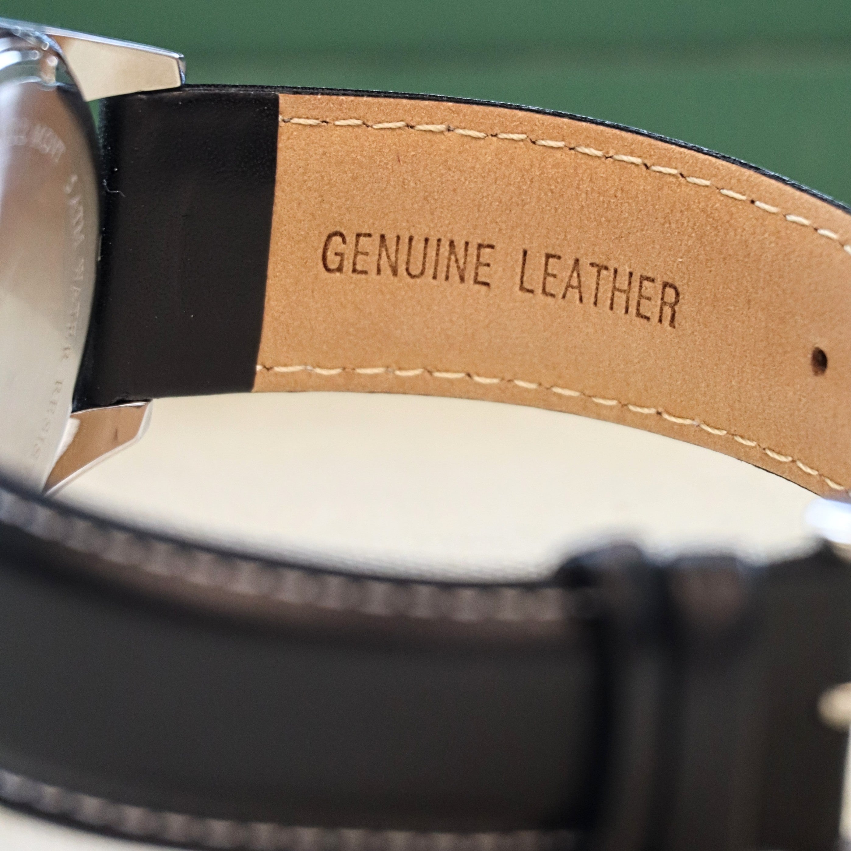 It comes with the original J. Brackett black genuine leather two-piece strap. Also, it is coming with the international warranty card and the original box.